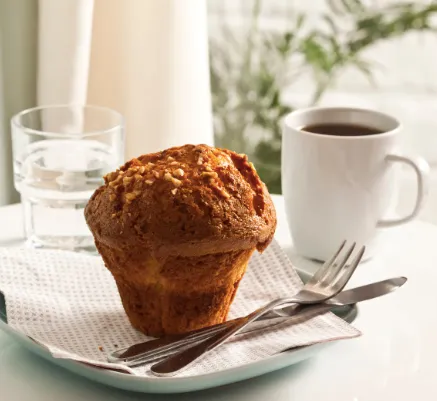 | Breakfast: 1 muffin (450 kcal) | Breakfast: oatmeal with banana and pumpkin seeds (300 kcal) |